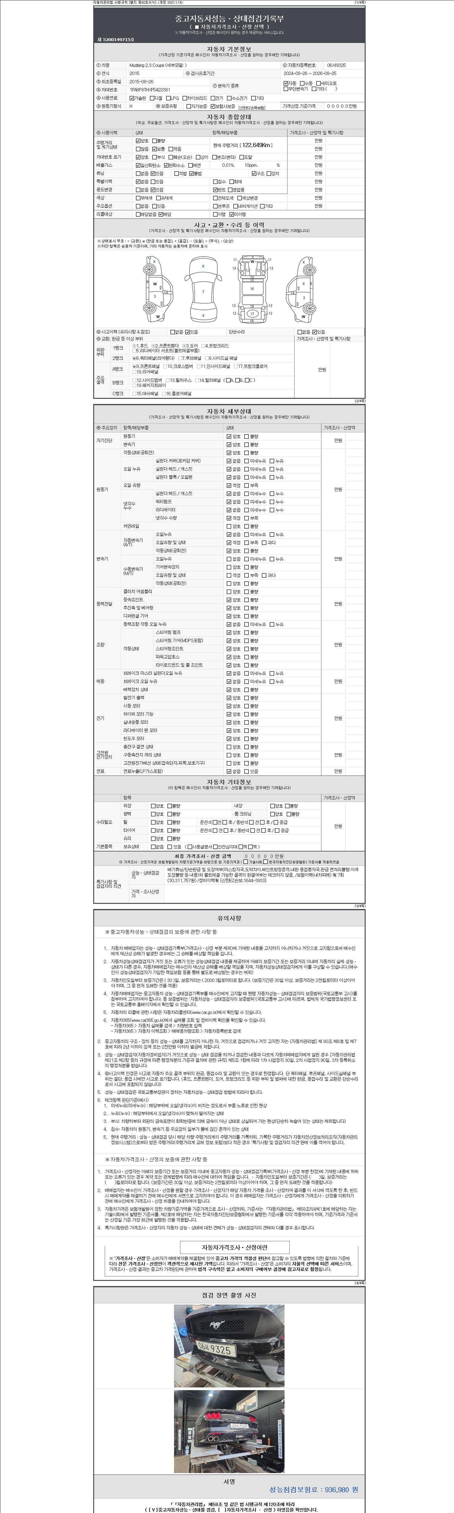 - 사고유무 : 성능기록부 참조